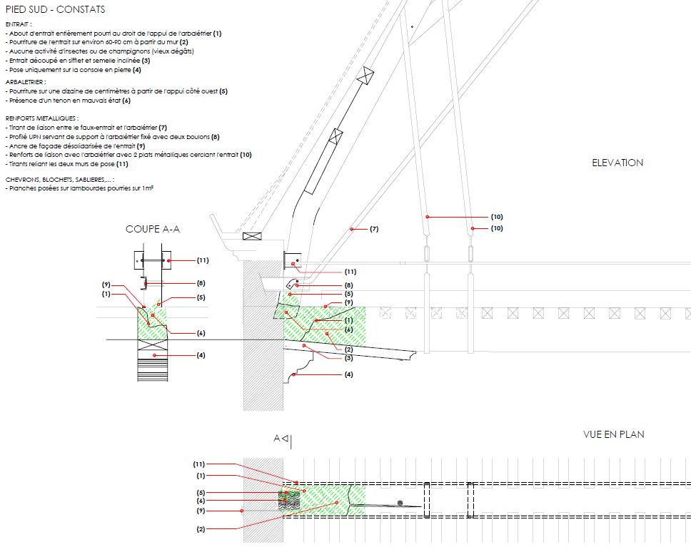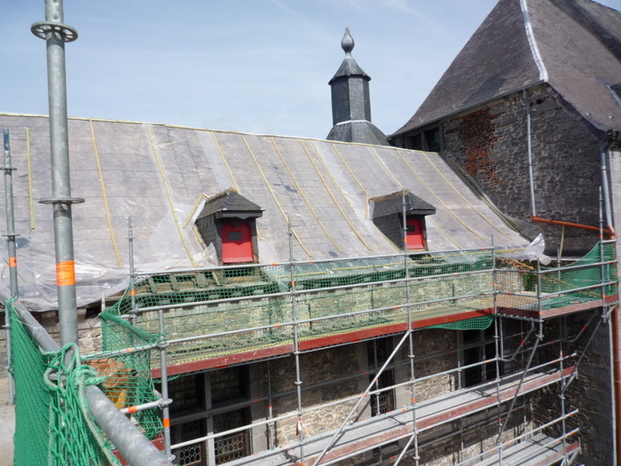 Patrimoine classé, le Chateau Fort d’Ecaussines fait l’objet de travaux de rénovation de (entre autres) ses charpentes bois et toitures. Les interventions visent à restaurer les morphologies structurelles d’origine des charpentes en remédiant aux dégâts causés par le temps, les intempéries ou les interventions antérieures… Avec l’architecte Michel Micciche et le SPW (architecte Florence Noirhomme), en collaboration avec la faculté polytechnique de l’UMons et le compagnon charpentier Pascal Lemlyn, ADEM défini les options structurelles (intervention classique charpente, renforcement métallique, emploi de résines et béton de résine, collage, …) et assure le suivi de chantier. Une expérience riche de par l’age de ces charpentes et la qualité de l’équipe pluridisciplinaire mise en place…
