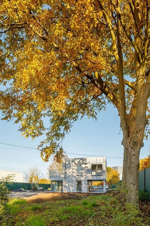Sur le site de Ghlin, l’option d’une nouvelle construction contemporaine et aux normes énergétiques a été retenue.