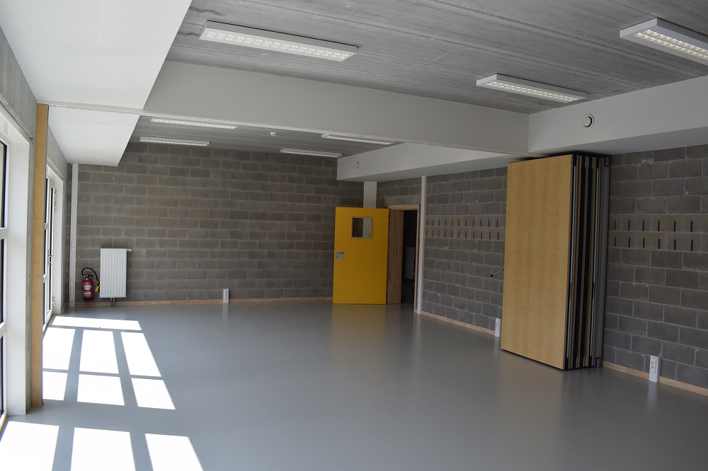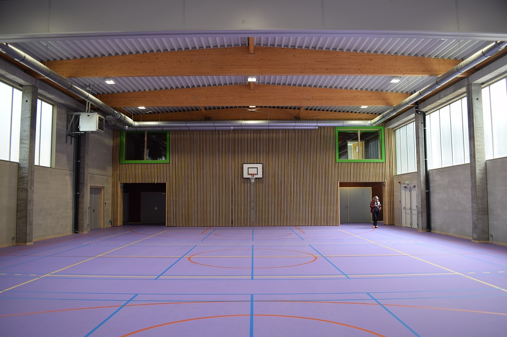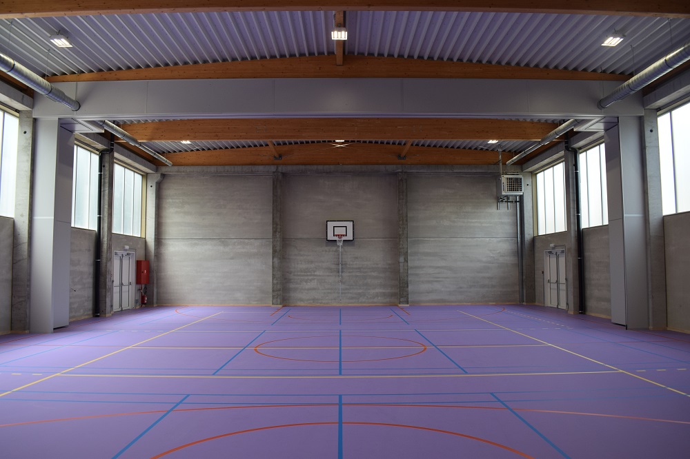 La salle de sport est conçue pour recevoir plusieurs compétitions tels que du basketball, du futsal, du volley, du badminton et du tennis de table. Ce bâtiment est composé de deux vestiaires collectifs, un vestiaire individuel, de locaux de stockage et de la salle de sport.