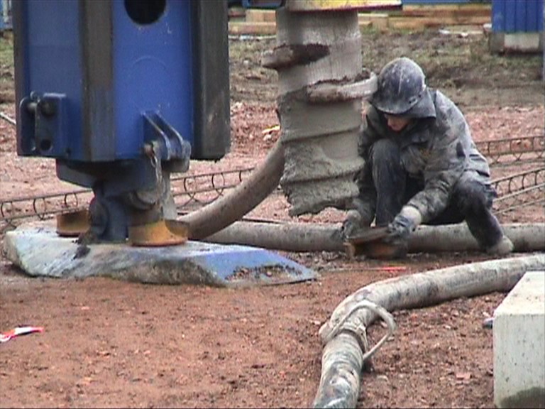 Bâtiments développés en deux ailes jointives. Structures mixtes: pieux/radier. Pieux pour le bâtiment de 3 niveaux (bureaux, classes, laboratoires).