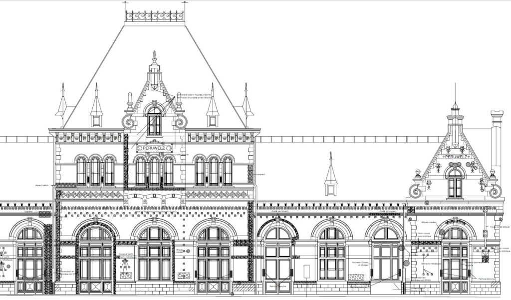 Etude complète (Architecture, stabilité et Techniques spéciales) de la restauration du monument classé de la gare de Péruwelz reprenant:
