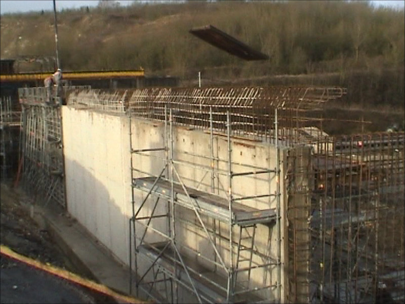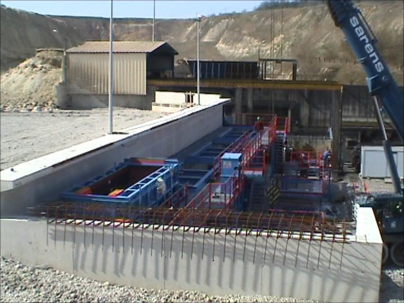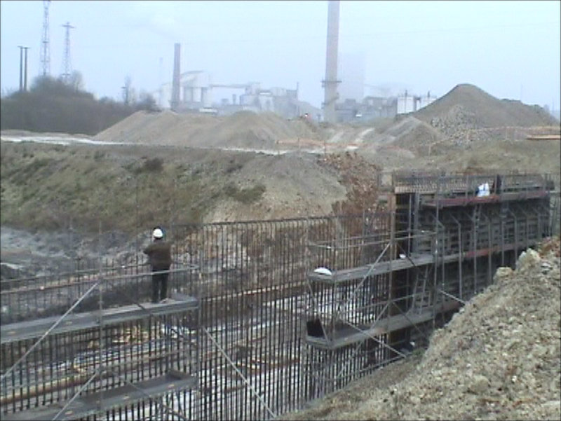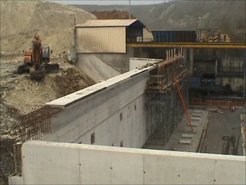 Installation destinée au chargement sur bande transporteuse d’additifs nécessaires à la fabrication du ciment. Les additifs sont placés dans des trémies par des chargeuses en fonction des besoins. Cette installation a nécessité la réalisation d’un soutènement de 50m de long sur plus de 7m de haut, venant jouxter une installation existante et en tête duquel venaient opérer les chargeuses (80T).